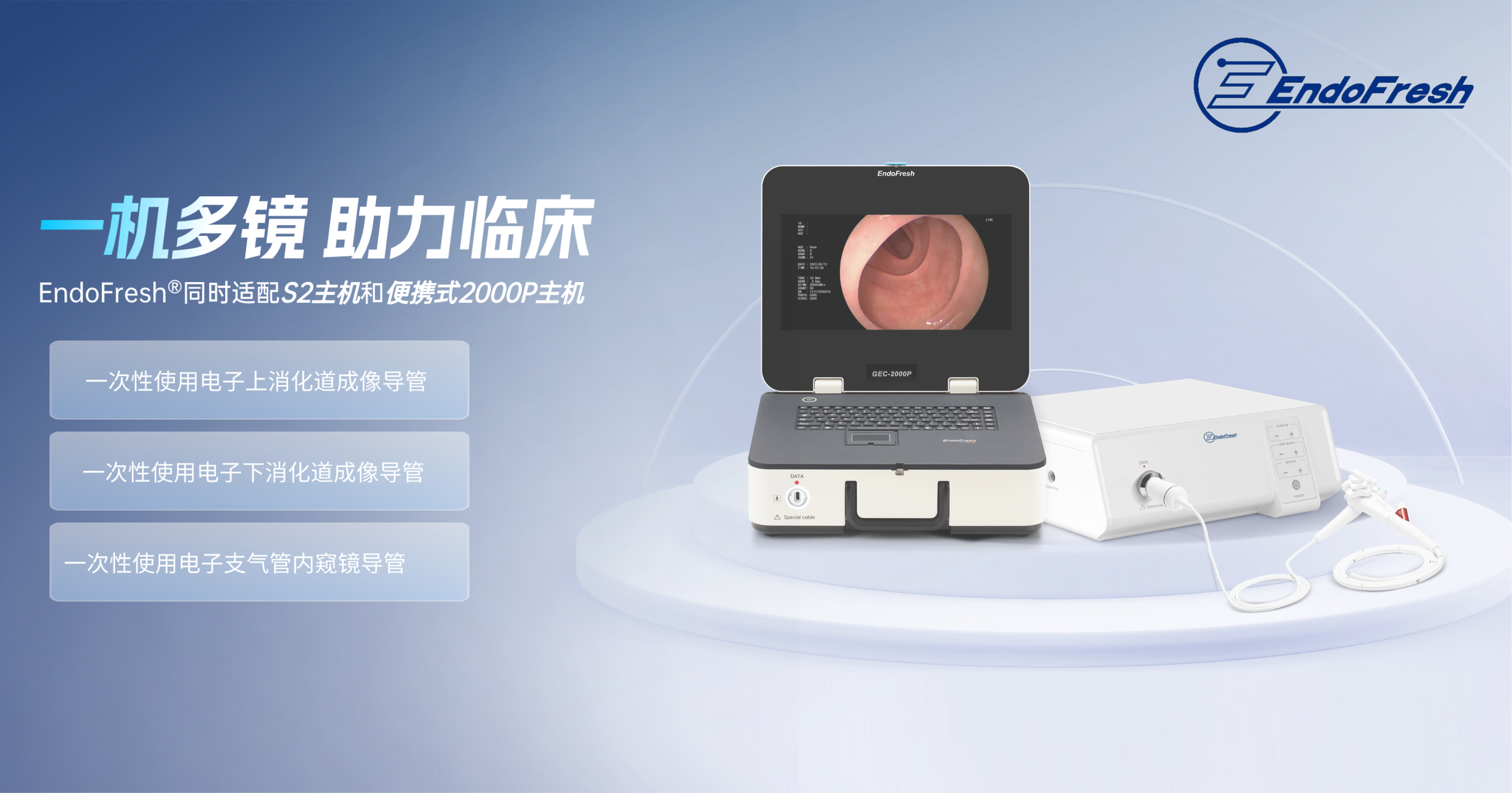 EndoFresh®同时适配S2主机和便携式2000P主机,实现“一机多镜、资源共享、助力临床”,在优化设备配置、降低综合成本的同时,进一步拓展了临床应用的广度和协同效率。