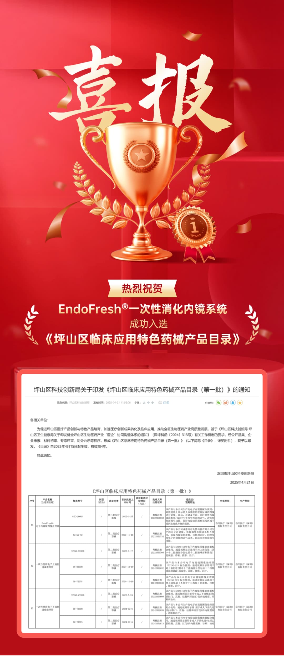 This catalogue selection aims to promote medical technology innovation and the implementation of clinical achievements in Pingshan District, Shenzhen. It focuses on cultivating featured products with strong clinical value and supports the upgrading of the regional biopharmaceutical industry.