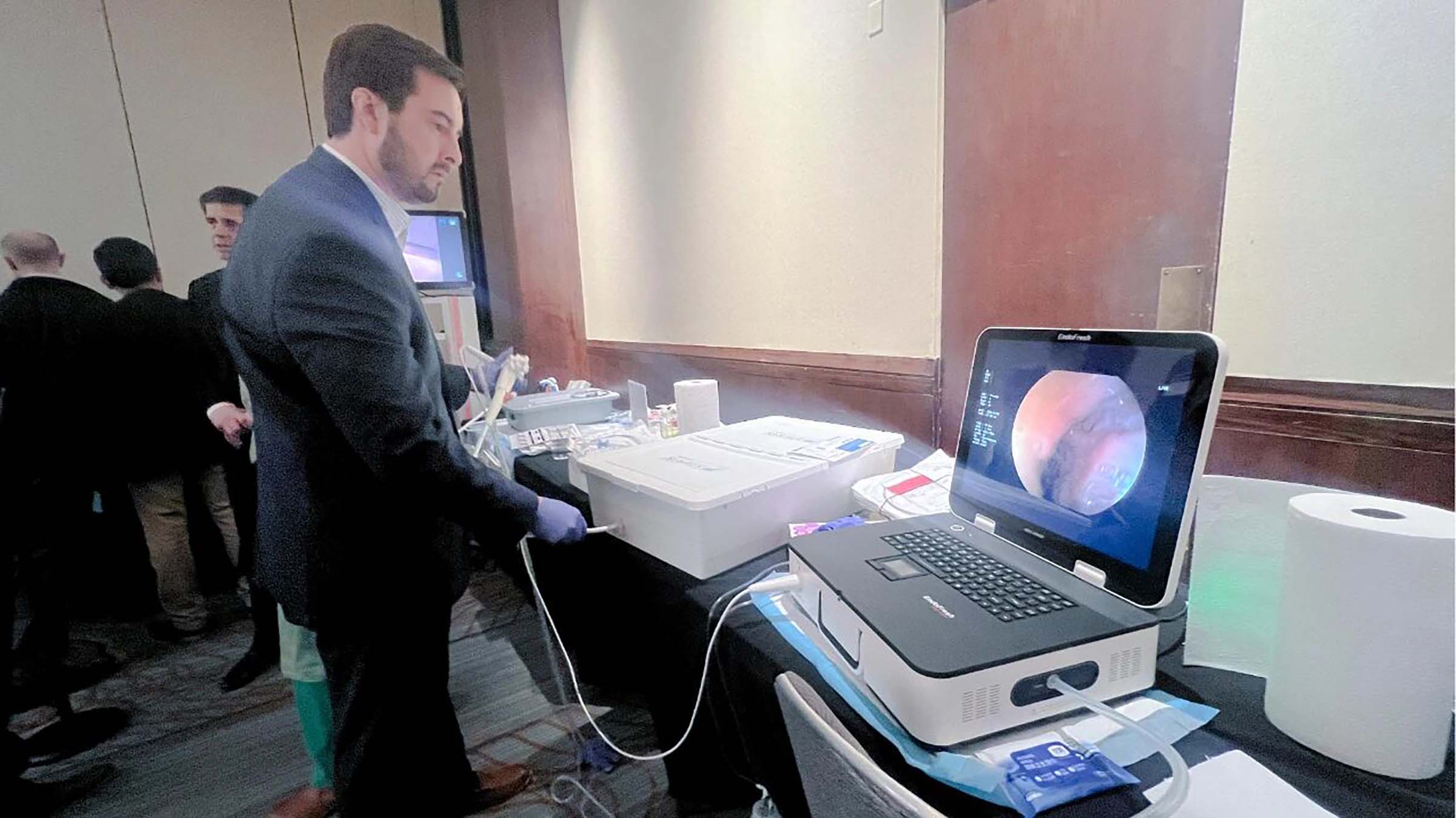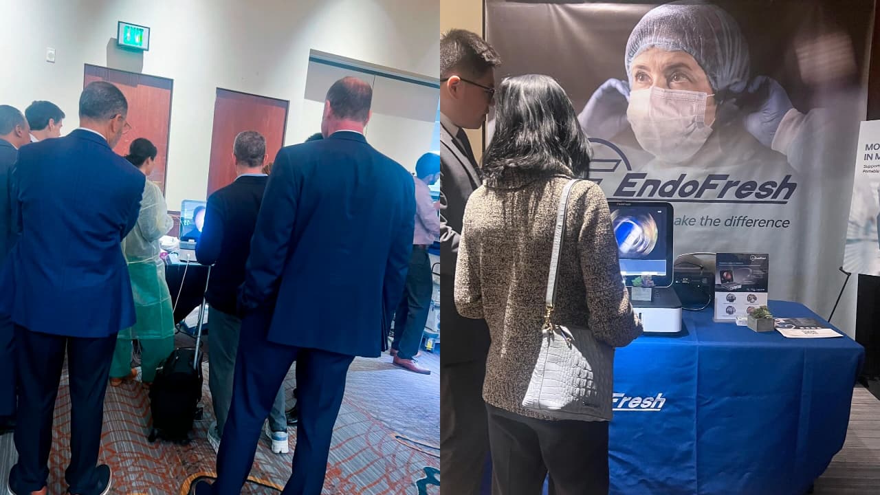 Physicians from the United States, Canada, and South America gathered at the EndoFresh® booth. Some carefully observed the product demonstrations, while others engaged in in-depth discussions with the EndoFresh® team. The staff provided detailed explanations of the product’s design concept, clinical procedures, and practical advantages, and many physicians showed strong interest in the system.